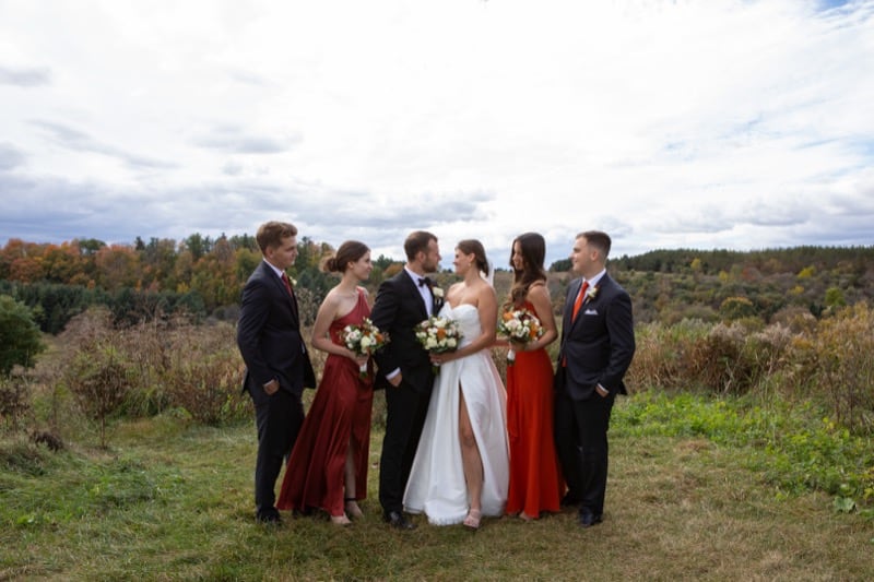 Following the ceremony, we made our way to Boyd Conservation Area, one of the most picturesque spots for Mississauga wedding photography in the fall. The park's expansive landscapes, towering trees, and stunning fall foliage created an incredible setting for the couple's portraits and bridal party photos. The crisp autumn air and golden leaves complemented Agata's elegant wedding dress and Darek's classic suit, resulting in timeless and romantic images that reflect the beauty of their love.