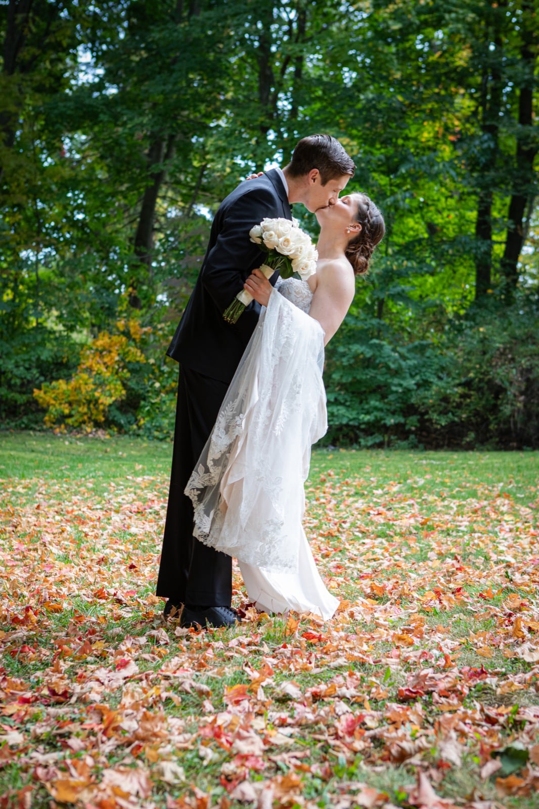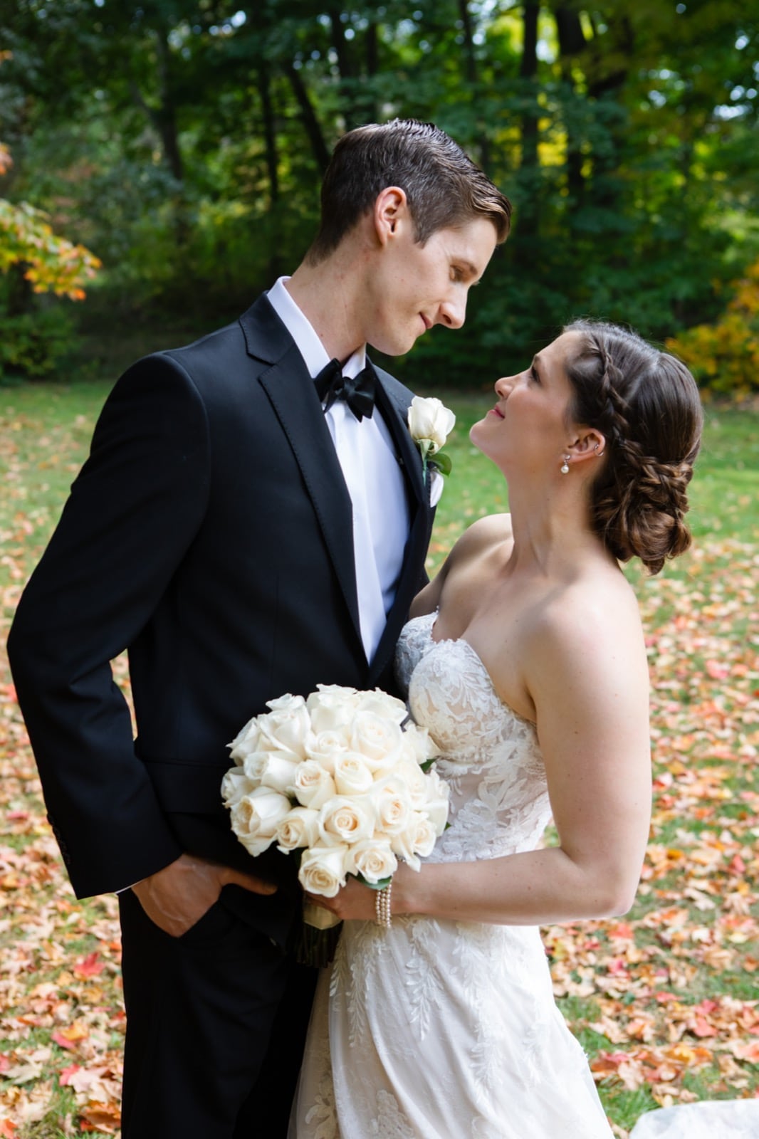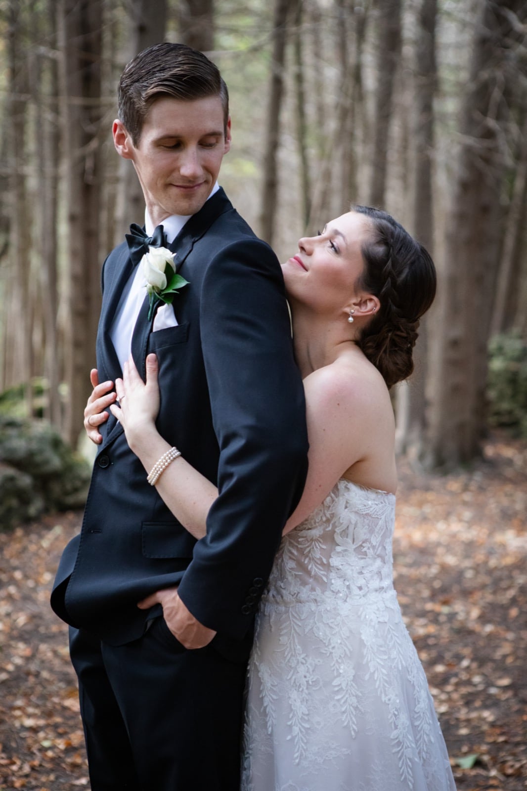After the ceremony, we explored the Inn's breathtaking grounds. The fall foliage was at its peak, creating a vibrant canvas of reds, oranges, and golds—ideal for dreamy outdoor portraits. As the sun began to set, we caught golden hour light cascading through the trees. These golden moments are what every Millcroft Inn wedding photographer dreams of—soft, romantic, and utterly timeless.