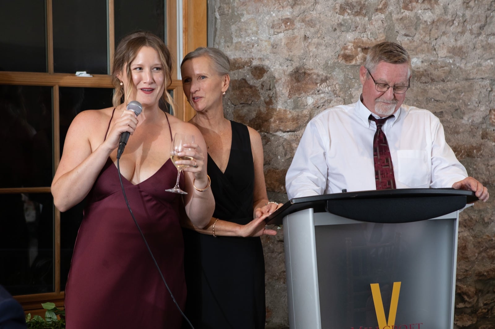 Aimee and Mackenzie's evening reception was held indoors in a warm, intimate space decorated to reflect the rich tones of the season. With heartfelt speeches, laughter, and a close-knit gathering of family and friends, it was a perfect ending to a perfect day.